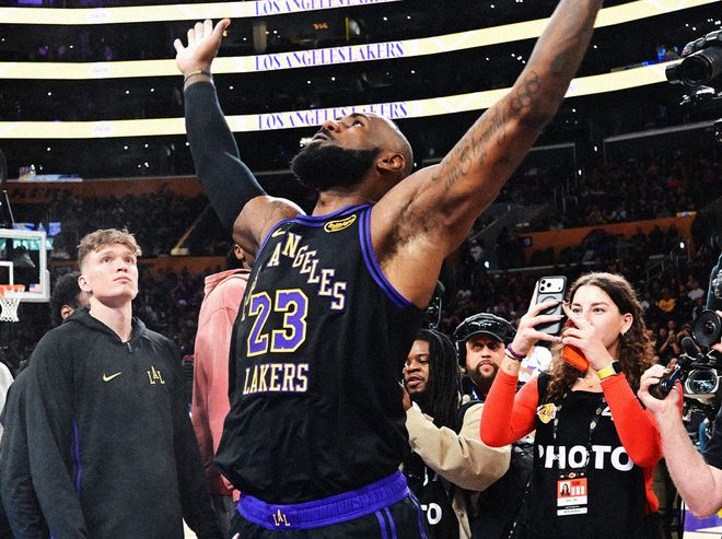 后半段东契奇开始造杀伤,随后联合詹姆斯外线轰炸,节末里夫斯也中三分球,半场湖人追到67-71爵士。进入下半场,东契奇军训贝利,里夫斯拉杆上篮,詹姆斯助攻里夫斯后自己后仰中投也中。中段东契奇和老詹合力反超比分后,爵士就有些顶不住:东契奇的三分,随后人缝中强行抛投打成2+1,海斯上篮继续打3分,节末文森特压哨三分命中!三节结束时,湖人104-93爵士。第四节开打,詹姆斯喂饼海斯暴扣,喂饼文森特轰三分,挂掩护喂饼艾顿连续吃饼,很快助攻上双!此后詹姆斯就继续助攻拉拉维亚打3分,爵士崩了。